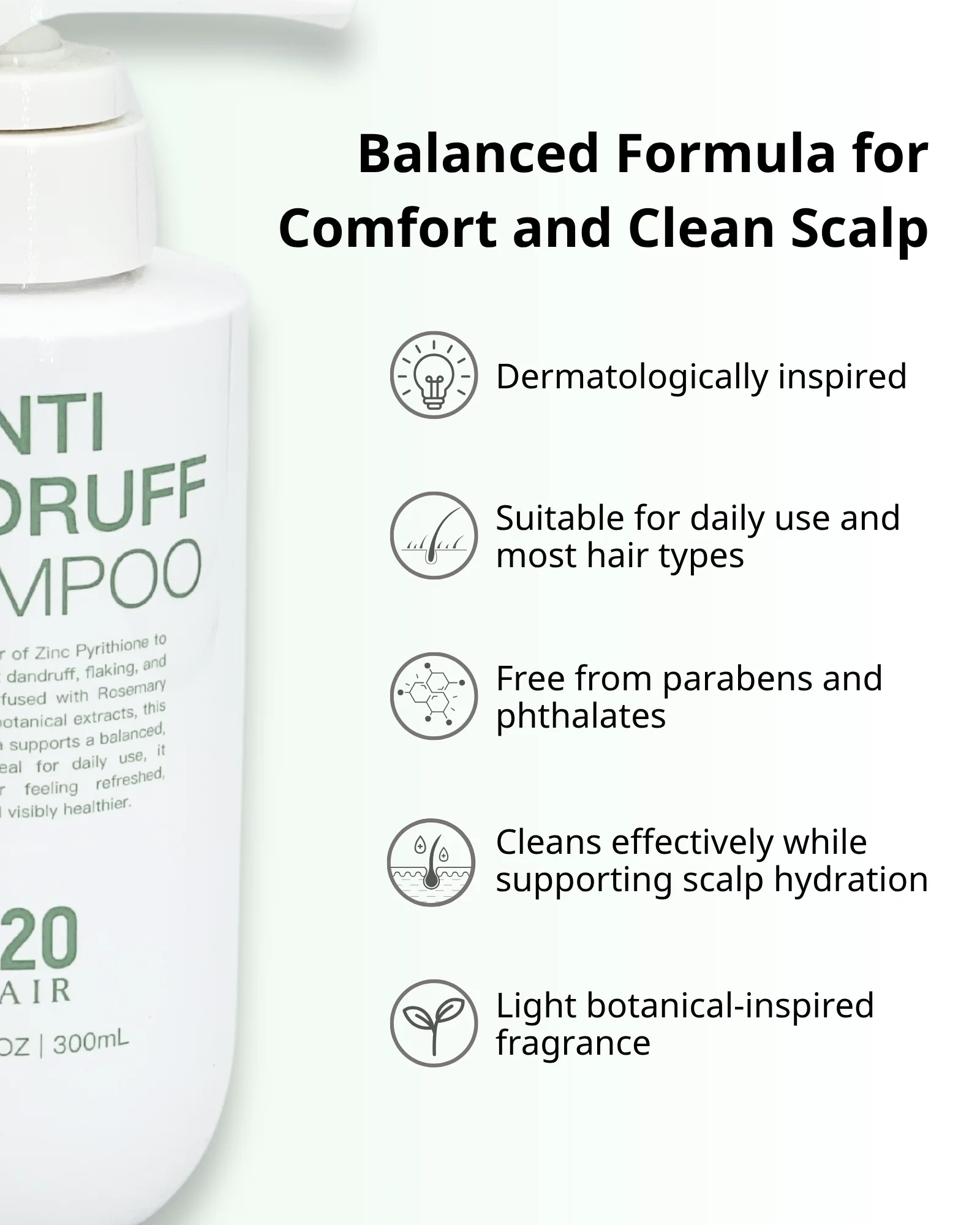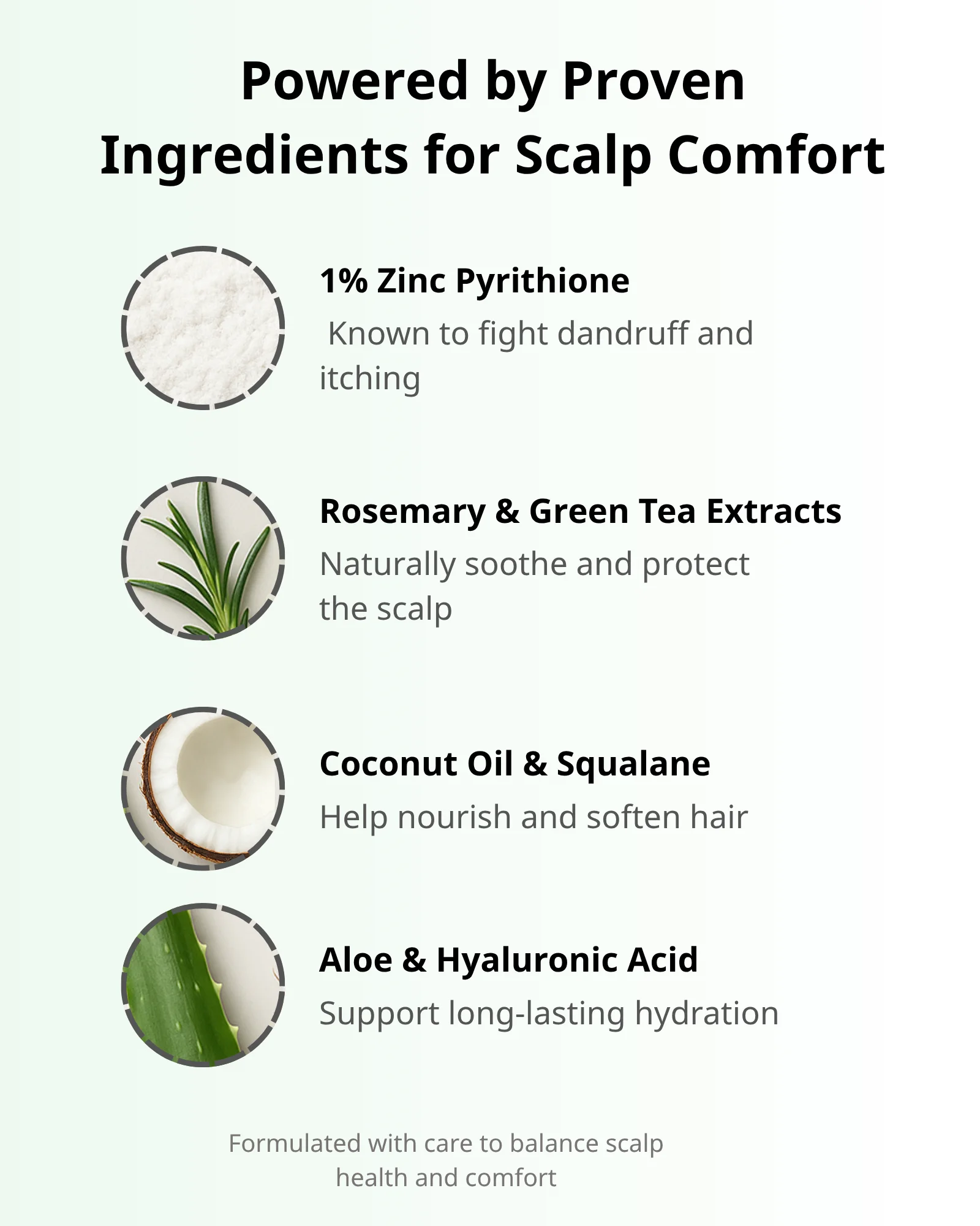 Zinc Pyrithione 1% — helps control visible flakes and support scalp freshness